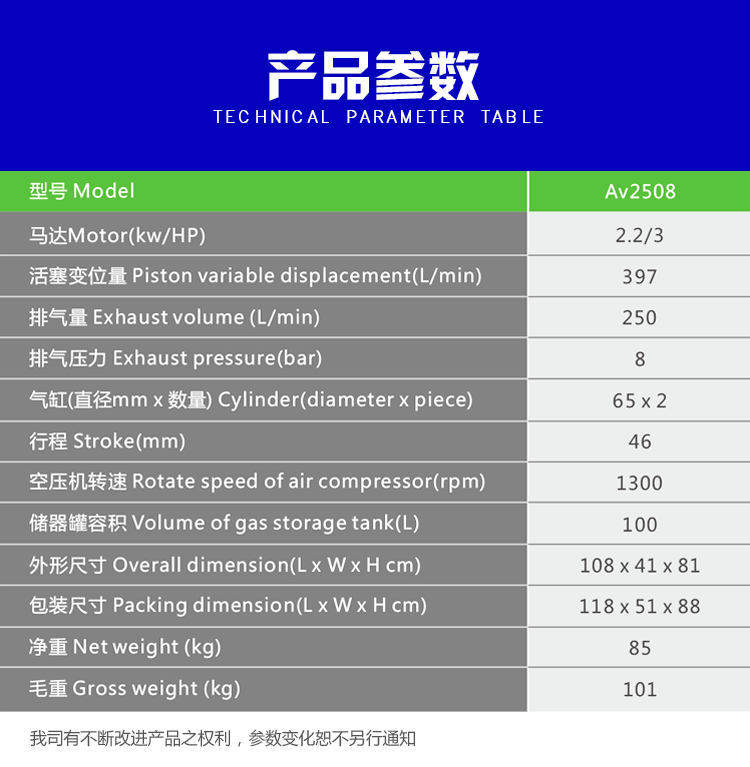 標題:2.2kW/3HP 新型節(jié)能環(huán)保活塞空壓機 AV2508