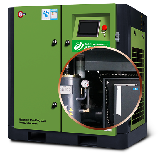 JUCAI螺桿空壓機主機,大轉子低轉速設計,采用先進的螺旋齒型技術,瑞典原裝進口SKF圓錐滾柱軸承,噪音低,能耗低。