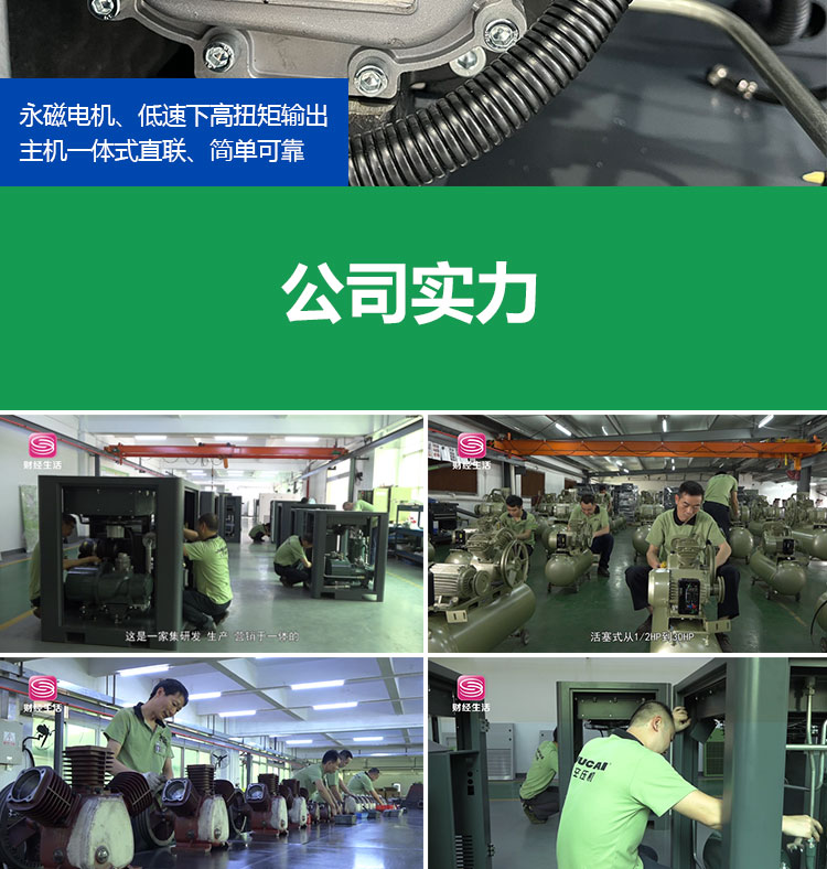 空壓機(jī)整機(jī)能效高于國家一級能效標(biāo)準(zhǔn),每產(chǎn)一立方的氣比行業(yè)大部分機(jī)器用電量少,氣量足,比行業(yè)基準(zhǔn)多10%,適應(yīng)惡劣工況條件,按24小時(shí)滿載運(yùn)行設(shè)計(jì)制造,將機(jī)械和電器完美融合。