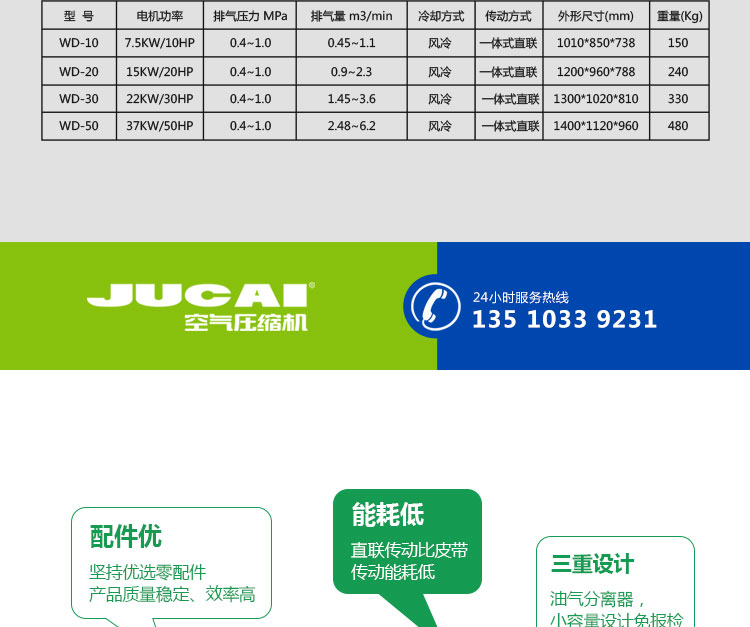 空壓機整機能效高于國家一級能效標準,每產一立方的氣比行業大部分機器用電量少,氣量足,比行業基準多10%,適應惡劣工況條件,按24小時滿載運行設計制造,將機械和電器完美融合。