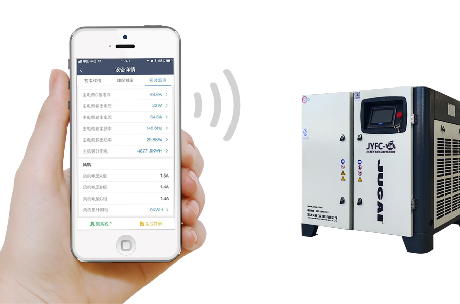 通過物聯網技術對空壓機設備進行全生命周期管理,遠程檢測,遠程管理,手機預警,數據采集等。