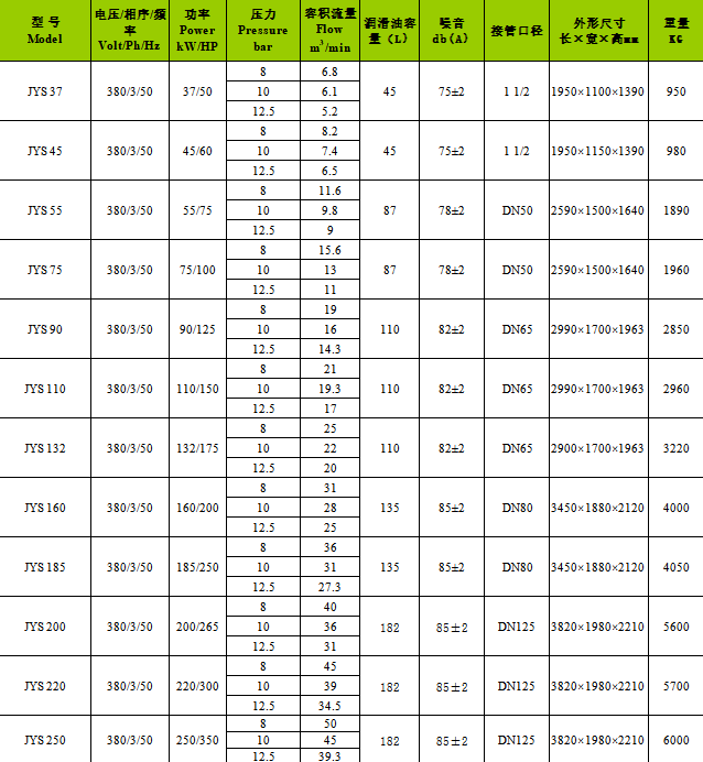 標題:55kW 雙級壓縮空壓機 流量:3.0-60m3/min 壓力:0.3-3.5Mpa